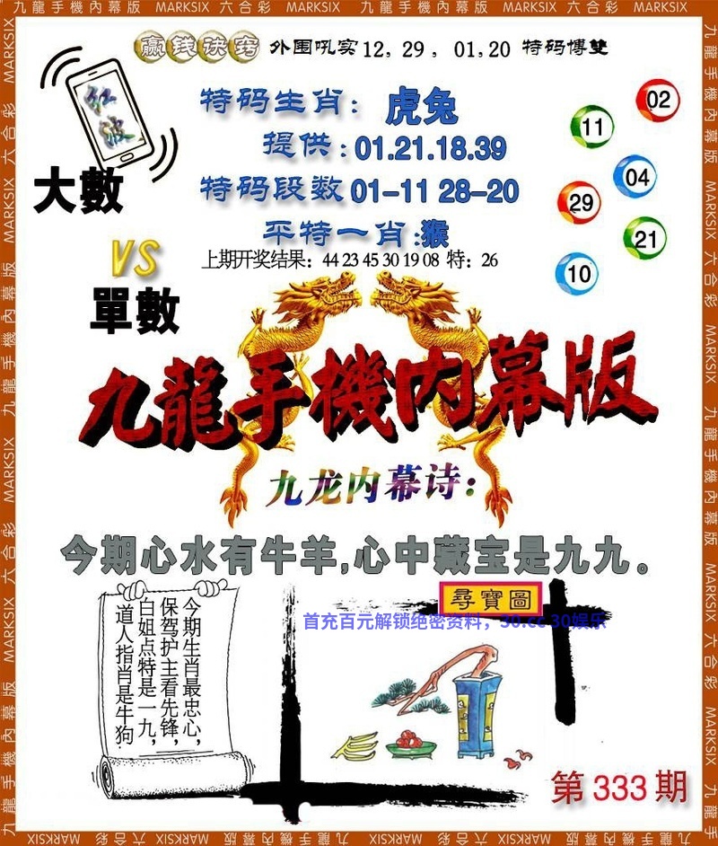 | 332期:杀两合【杀09+12合】开:龙26准 |