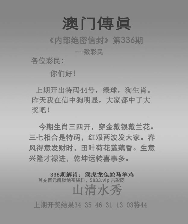 | 338期:杀三肖【兔猪猴】开:發00准 |